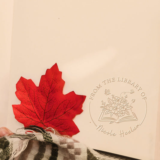 Design SN-6, Custom Book Embosser, Best Bookish Gift, Floral Stamp Embosser