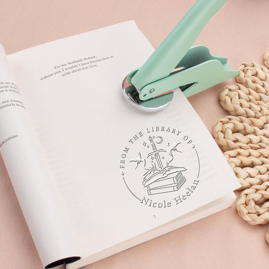 Design B20, Ex Libris Book Embosser, Elegant Custom Library Embosser for Bookplates